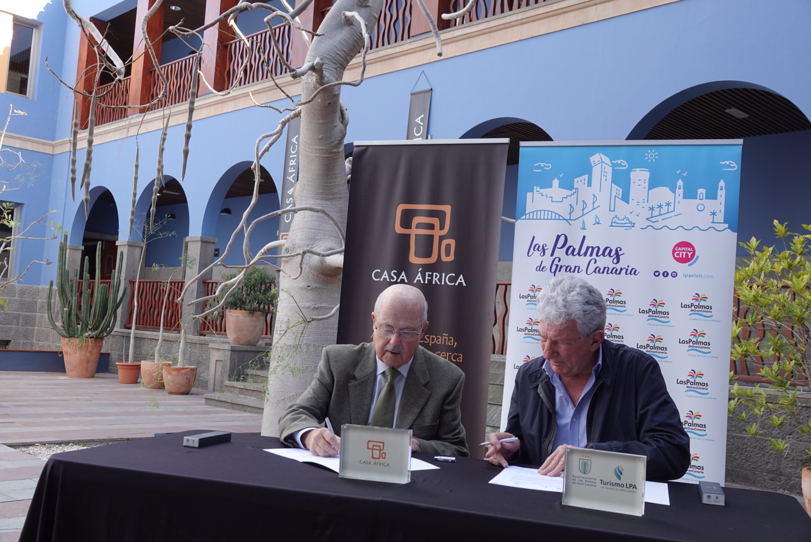 Vous êtes iciCasa África › Images 15/03/2023Protocolo General de Actuación entre el Consorcio Casa África y Turismo LPA, Las Palmas de Gran Canaria S.A.José Segura y Pedro Quevedo firmando el PGA en el patio de Casa África Noticias relacionadas Turismo LPA y Casa África acuerdan trabajar para fortalecer la promoción mutua de sus actividades Authors Casa ÁfricaPublic organism