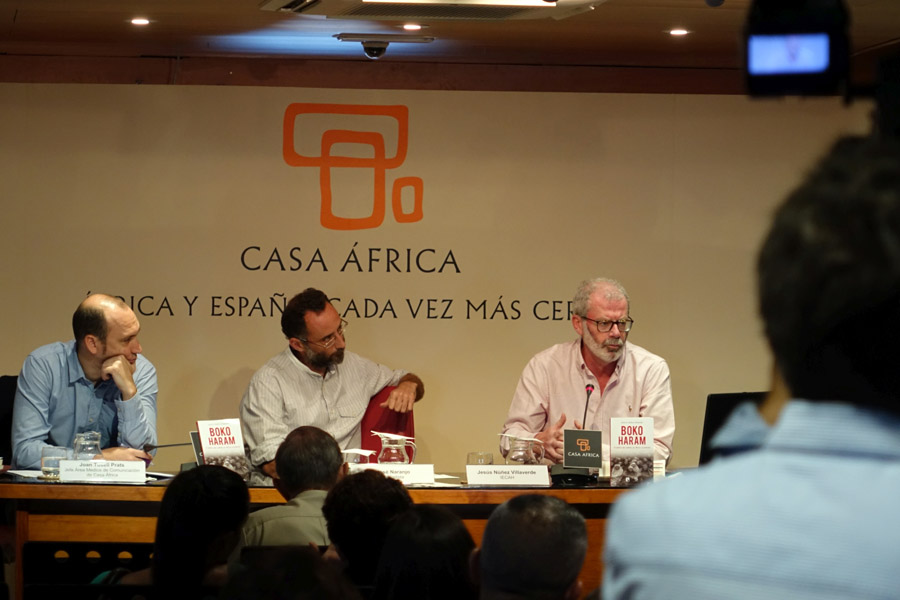 La segunda mesa, también con un ojo puesto en el crecimiento del yihadismo en África, se centró en Nigeria y en el grupo terrorista que más ha despertado la atención global en el último año: Boko Haram. En ella, el codirector del Instituto de Estudios sobre Conflictos y Acción Humanitaria (IECAH), Jesús Núñez Villaverde, disertó sobre Boko Haram (tema de su recién publicado libro El delirio del Califato en África occidental, en la colección Casa África de La Catarata) y el periodista José Naranjo habló de su experiencia en el reciente viaje que emprendió por la zona norte de Nigeria para informar sobre los estragos que está causando el grupo terrorista en el país más poblado del continente.