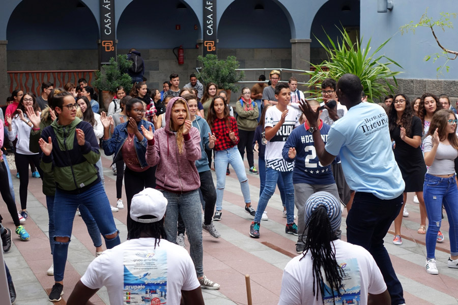 This morning, Casa África opened the exhibition Teaching Africa, which is the result of an educational project of the same name that has been implemented during this academic year in the classrooms of 235 teachers from 31 schools in six of the Canary Islands, reaching about 8,000 students. In the presentation of this exhibition, which brings together school work around a teaching unit with African content in all subjects, a group of students who have worked on the project participated in activities including a workshop by the Hermanos Thioune. The presentation was attended by the director general of Ordering, Innovation and Educational Development of the Government of the Canary Islands, Rafael Bailón; project coordinators, Ezequiel Guerra and Ignacio Nadal; Josefa de la Rosa, manager of the University Centre for International Cooperation for Development (CUCID) and Arianne Hernández, general secretary of Casa África. The students were from the secondary schools Guanarteme, Guillermina Brito, Valsequillo and Villa de Firgas. The exhibition will be open until 30 December.