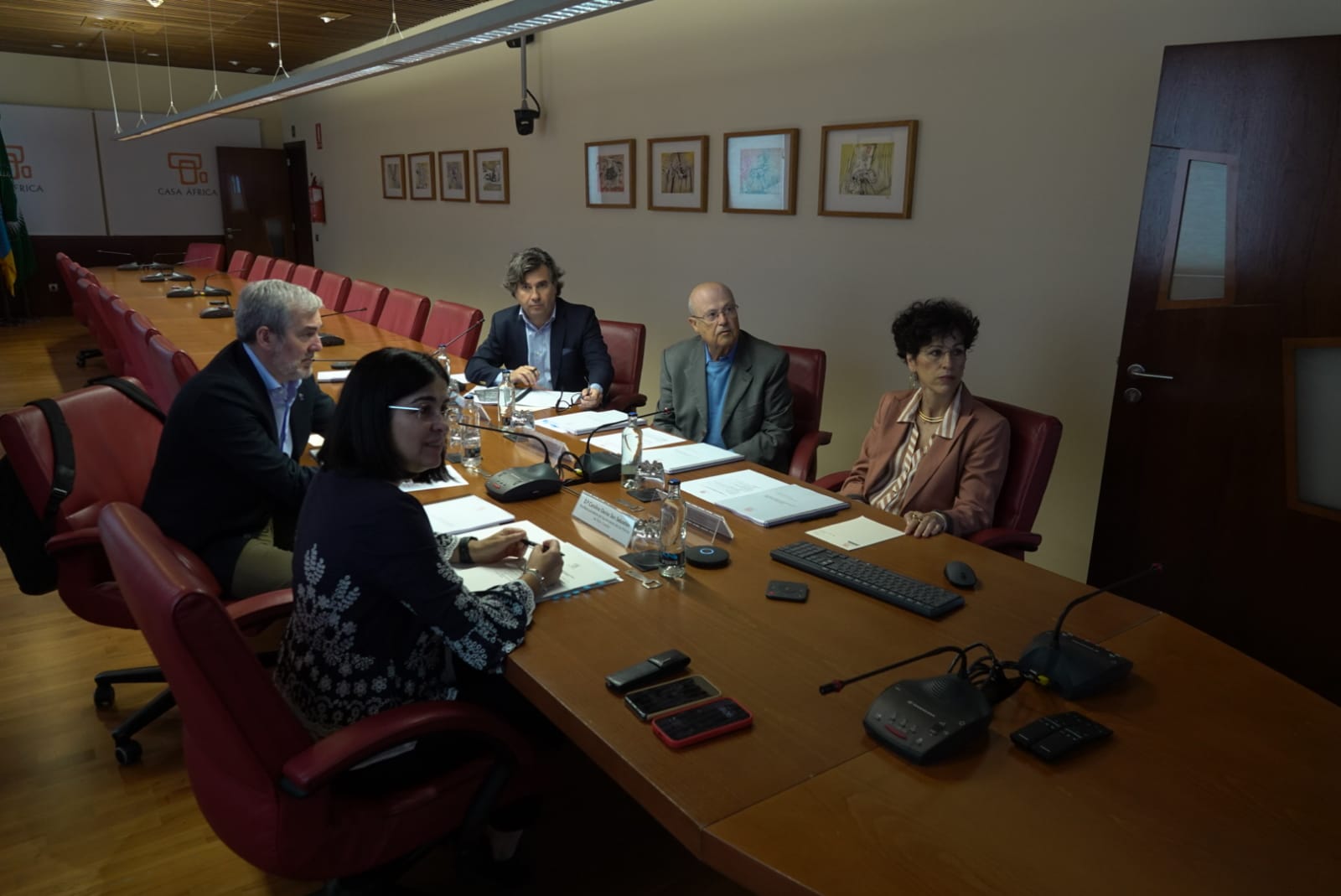 A la reunión del Consejo Rector, celebrada en la sede de la institución en Las Palmas de Gran Canaria, acudieron presencialmente el presidente del Gobierno de Canarias, Fernando Clavijo, y la alcaldesa de Las Palmas de Gran Canaria, Carolina Darias, que acompañaron al director general de Casa África, José Segura Clavell, el secretario general Justo Artiles y la gerente de la institución, Ana María Hernández.