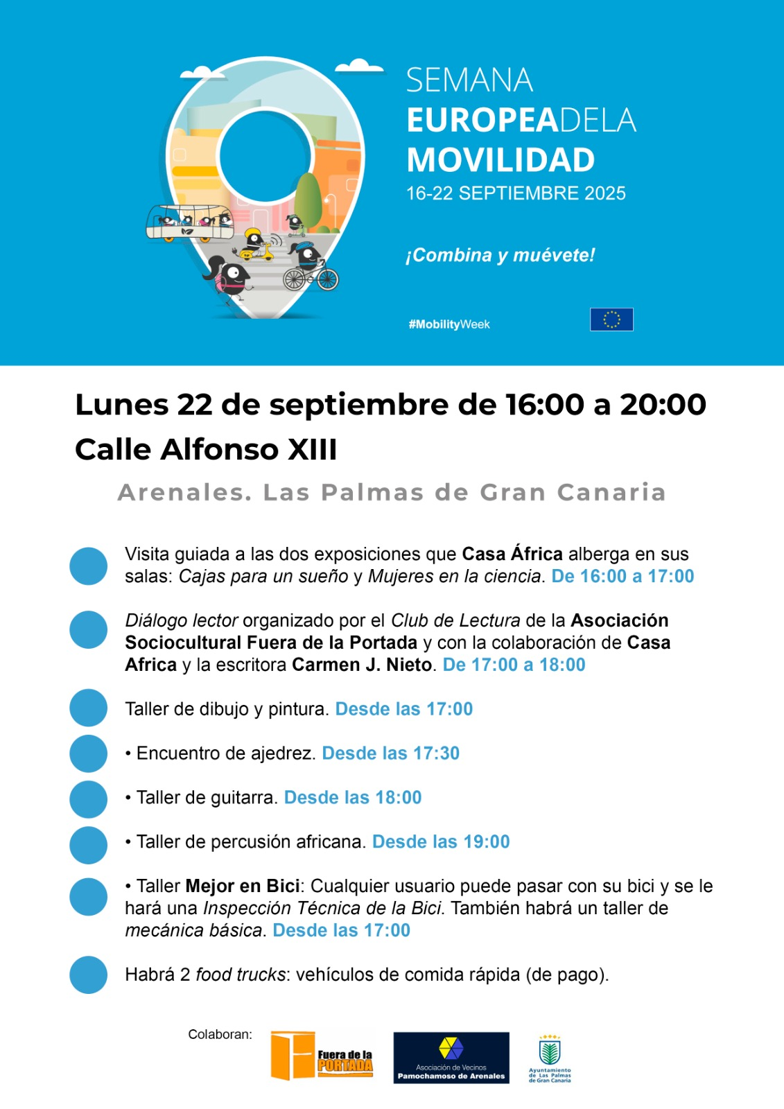 Como no podía ser de otra manera, el Ayuntamiento de Las Palmas de Gran Canaria se suma a esta iniciativa y, a petición de la Asociación de Vecinos Pamochamoso de Arenales, barrio que alberga la sede de Casa África, esta institución se suma a su programa de actividades e invita a todos los participantes a los actos que en este marco tendrán lugar en su sede: