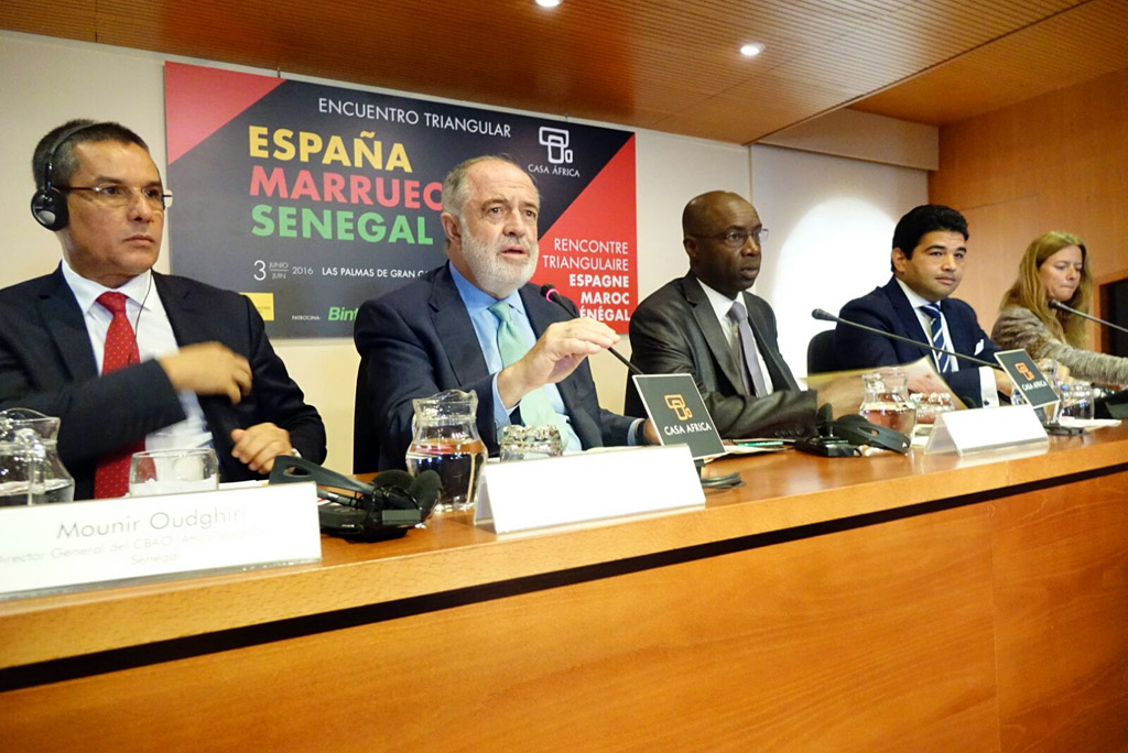 Casa África acogió hoy el Encuentro Triangular España-Marruecos-Senegal, una novedosa iniciativa organizada por la institución de diplomacia pública y las Embajadas de España en Senegal y Marruecos. Los proyectos en diferentes sectores, sus posibilidades de financiación y la línea de trabajo del Plan Senegal Emergente (el plan estratégico del Gobierno de Senegal para crear 600.000 empleos en los próximos 10 años) se convirtieron en el eje de trabajo de la iniciativa. Ésta contó con el patrocinio de la aerolínea Binter y se organizó en torno a una sesión plenaria y tres mesas redondas centradas en tres sectores prioritarios para los tres países: energía; logística y zonas industriales; e industria alimentaria y bebidas. Esta actividad de diplomacia económica reunió a más de 120 personas de los tres países, representantes de instituciones y empresas.