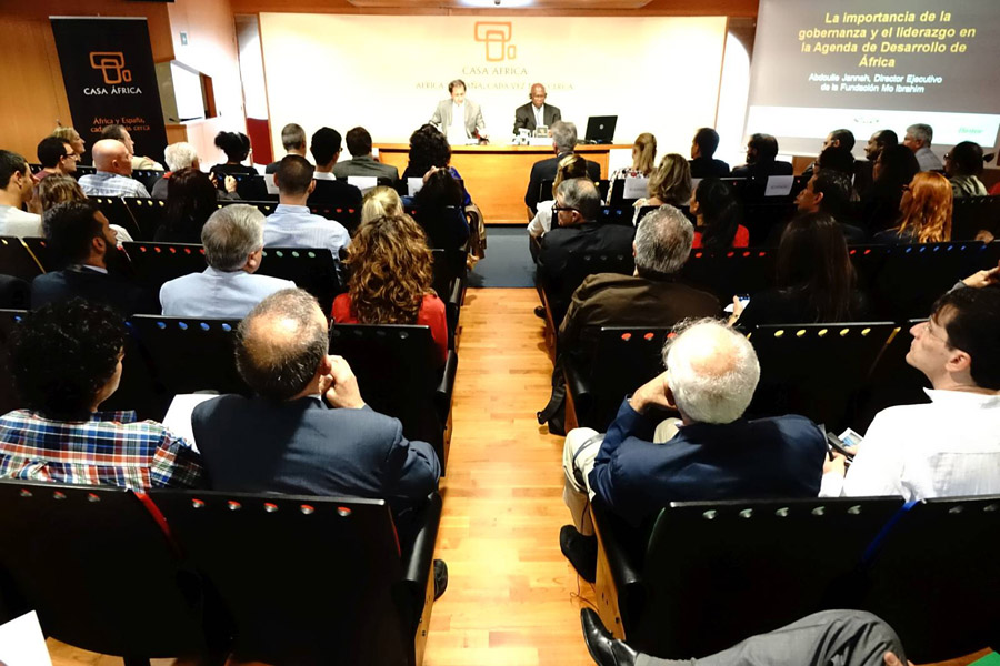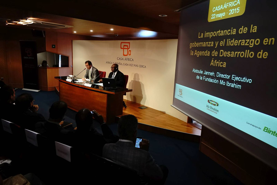 «Se han dado progresos, pero queda mucho por hacer», afirmó esta mañana en la sede de Casa África el Director Ejecutivo de la Fundación Mo Ibrahim, Abdoulie Janneh, al término de una conferencia que impartió ante un auditorio lleno de autoridades, académicos y público general. La conferencia, denominada La importancia de la gobernanza y el liderazgo en la Agenda de Desarrollo de África, estuvo precedida por unas palabras del Director General de Casa África, Luis Padrón López, que explicó el trabajo de la Fundación Mo Ibrahim, una institución privada sin ánimo de lucro que destaca entre los cinco mayores think tanks a nivel mundial. Creada por el multimillonario anglo-sudanés Mohamed Mo Ibrahim en el año 2006, su trabajo resulta conocido entre los medios de comunicación porque concede un premio anual de cinco millones de dólares al mejor presidente africano.