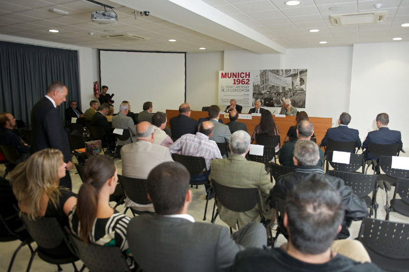 El acto, organizado por Casa África, contó con la presencia de dos de los participantes en el Contubernio, Fernando Álvarez de Miranda y Carlos Bru. También estuvieron presentes familiares de dos de los asistentes al Contubernio que estuvieron desterrados en Fuerteventura con Álvarez de Miranda: Joaquín Satrústegui y Jesús Barros de Lis. Finalmente, se produjo un reencuentro entre estas personalidades de la transición política desde el franquismo a la democracia y las personas que les acogieron en Fuerteventura e hicieron más agradable su destierro: Arístides Hernández Morán, Hortensia Pérez o Marcelino López Melián, entre otros. El acto consistió en una presentación de la exposición, por parte de las autoridades, y una posterior mesa redonda con la participación de los participantes del Contubernio.