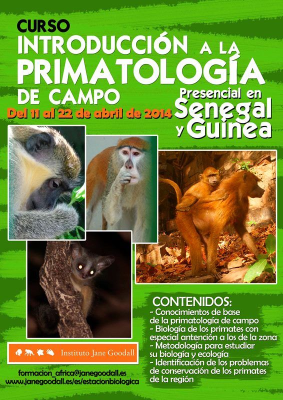 En las mismas fechas tendrá lugar también la primera edición del curso de Iniciación a la primatología de campo, que se desarrollará entre Senegal y Guinea y será impartido por los investigadores de campo del Instituto Jane Goodall España en Senegal. Este curso versará sobre: