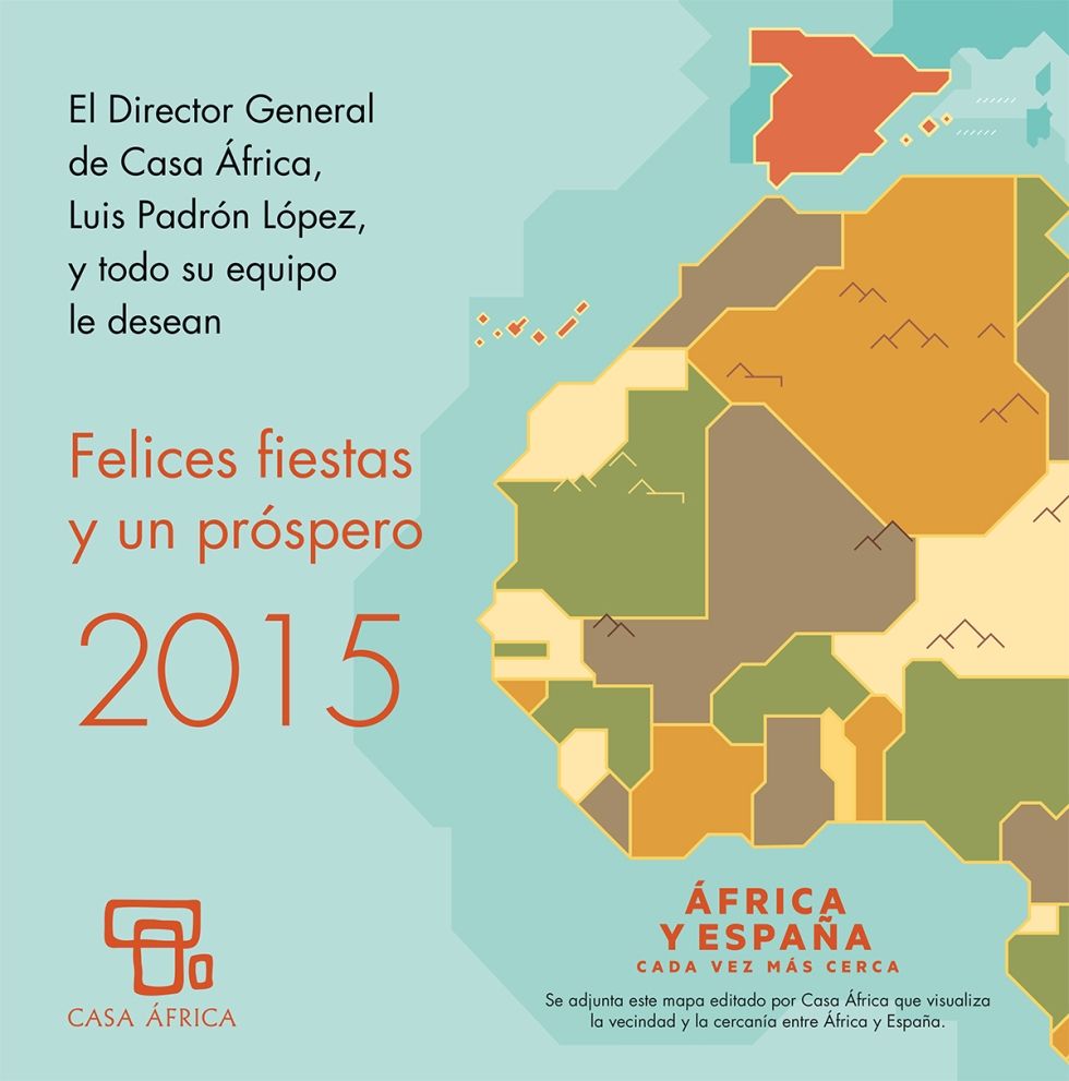 Con esta newsletter nos despedimos hasta el próximo año y no queremos hacerlo sin dejar a todos nuestros usuarios nuestros mejores deseos para este nuevo año que comienza y para el que ya estamos preparando actividades, trabajando para que lo africano no nos sea tan ajeno, ni desconocido, ni extraño, ni lejano, para ir conociendo África, su riqueza humana, su historia, su grandeza, su tolerancia y su alegría, para acercarnos y ganar todos. El deseo del Director General y de todo el equipo de Casa África es que 2015 nos acerque más aún. Feliz Año Nuevo. |