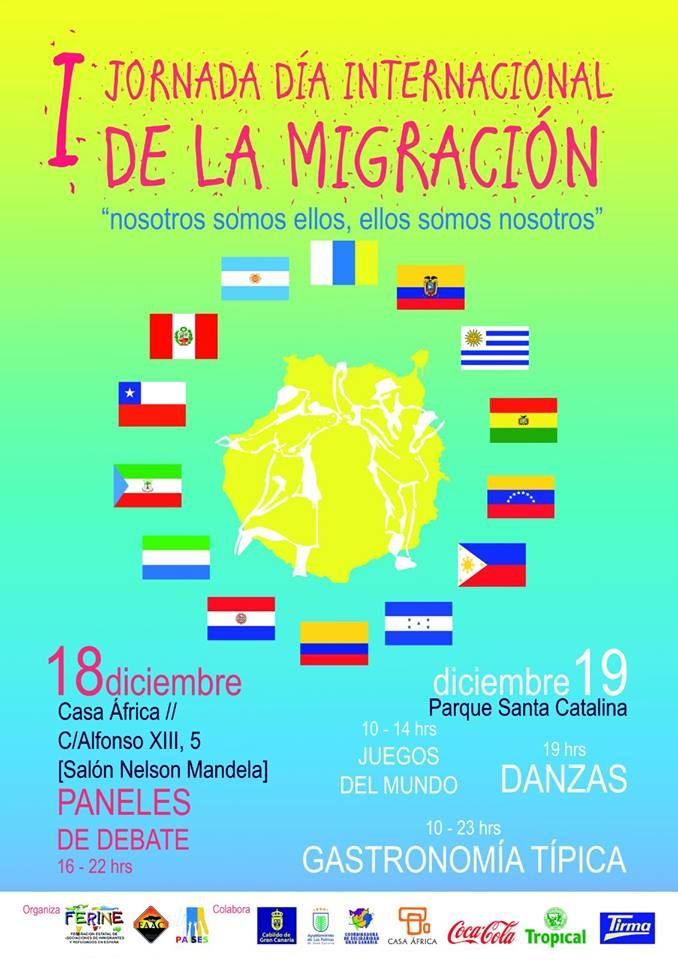 La delegación en Gran Canaria de la Federación Estatal de Asociaciones de Inmigrantes y Refugiados en España (Ferine Gran Canaria), celebra el 18 de diciembre en Casa África la "Jornada por el Día Internacional del Migrante", un evento que forma parte de un conjunto de actividades que se completan el día 19 en el Parque Santa Catalina de la capital grancanaria con juegos, danzas y gastronomías del mundo.